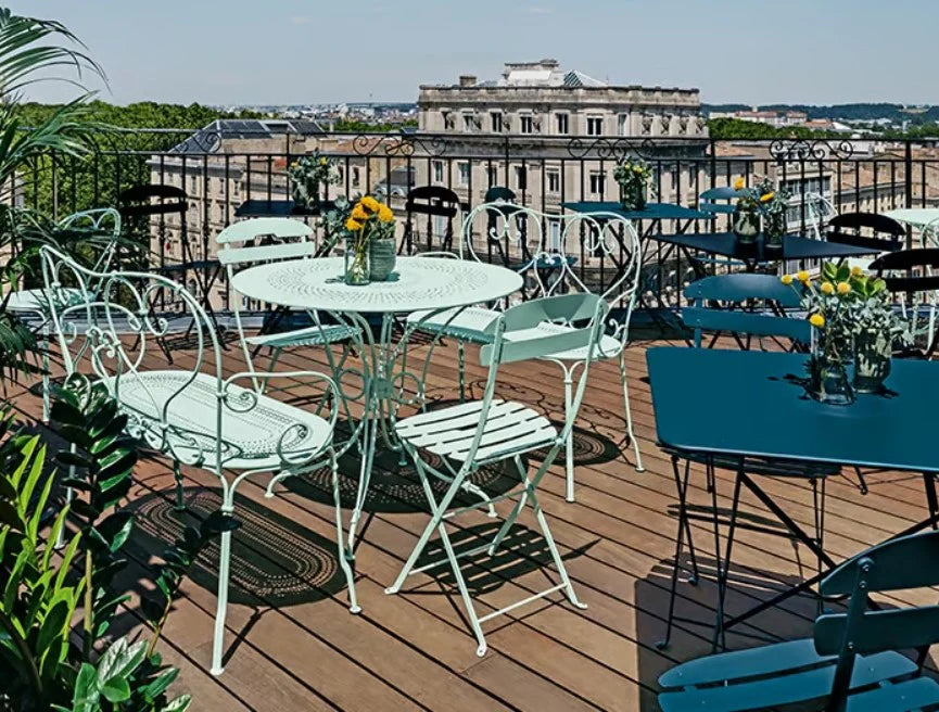 Designed to seat two people, this bench is perfect for hotel courtyards, boutique balconies, and tranquil gardens. Each piece is made at Fermob’s renowned French workshop in Thoissey, with quality finishing that’s UV-resistant, weatherproof, and built to last.
