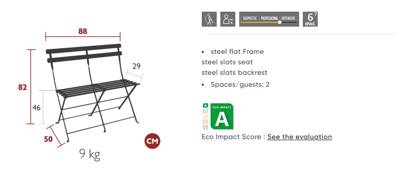 The Bistro 2-Seater Folding Bench is built to maximize outdoor moments without crowding your space. It offers reliable durability, easy storage, and a striking, color-forward look that complements any Bistro setup. With its fold-flat design, you can ready dining areas, lounges, or waiting spaces in moments, while the French-made craftsmanship ensures longevity. Plus, its eco-conscious materials support sustainable outdoor living—so you can enjoy stylish seating that aligns with responsible design.