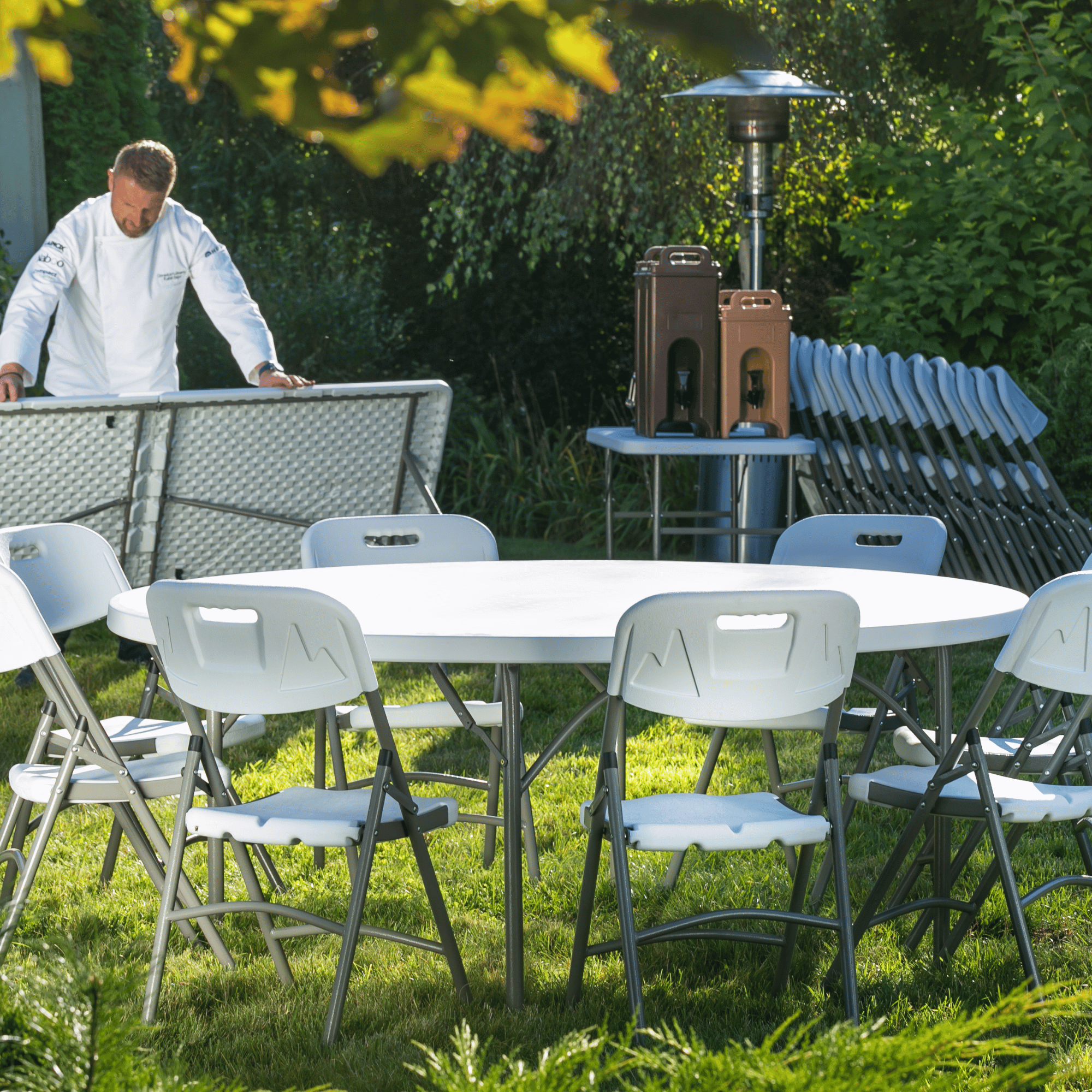 - Multifunctional folding furniture, designed for outdoor and indoor useindoors - Ideal for trade fairs, conferences, outdoor events, catering, outdoor recreation or rental - HDPE polyethylene tops - Construction made ofcorrosion-resistant metal profiles - Easy to store and transport - Easy to clean and resistant to dirt