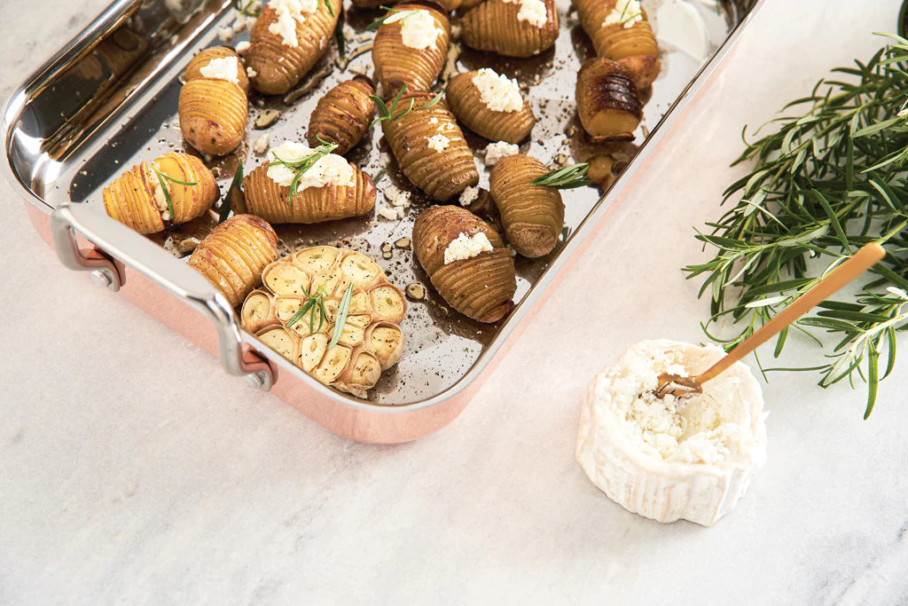 This premium roaster helps you achieve consistent results, whether you're preparing a holiday feast, weekly roasts, or weeknight sheet-pan meals. Copper’s rapid response reduces hotspot risk, the stable aluminium core provides reliable heat distribution, and the non-reactive stainless interior makes cleanup after busy services simpler. The Aurora Collection roaster brings restaurant-grade performance to your home kitchen while its elegant copper exterior elevates presentation for every table.