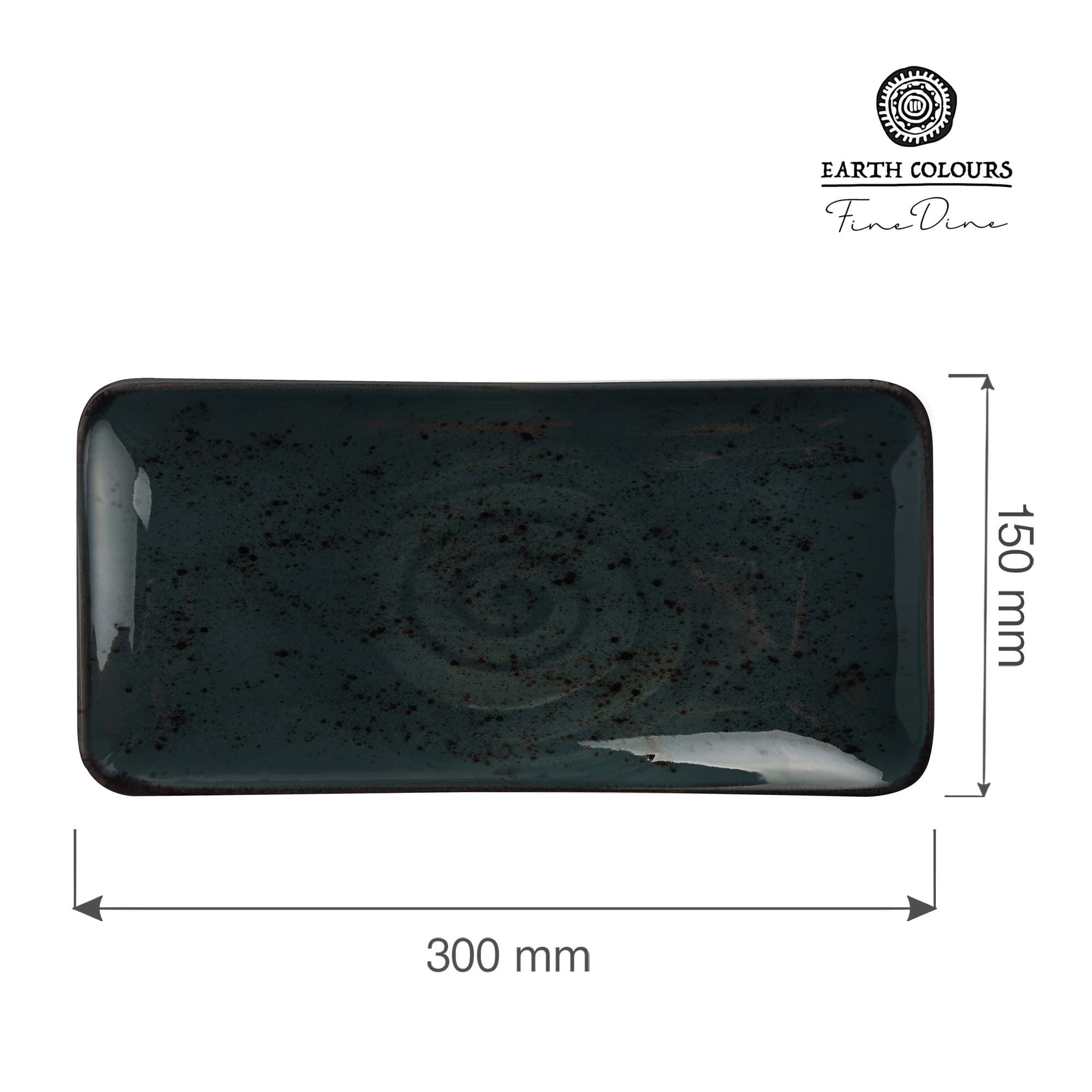 Dimensions: 300 × 150 mm rectangular plate, sized for portions and presentations from starters to mains