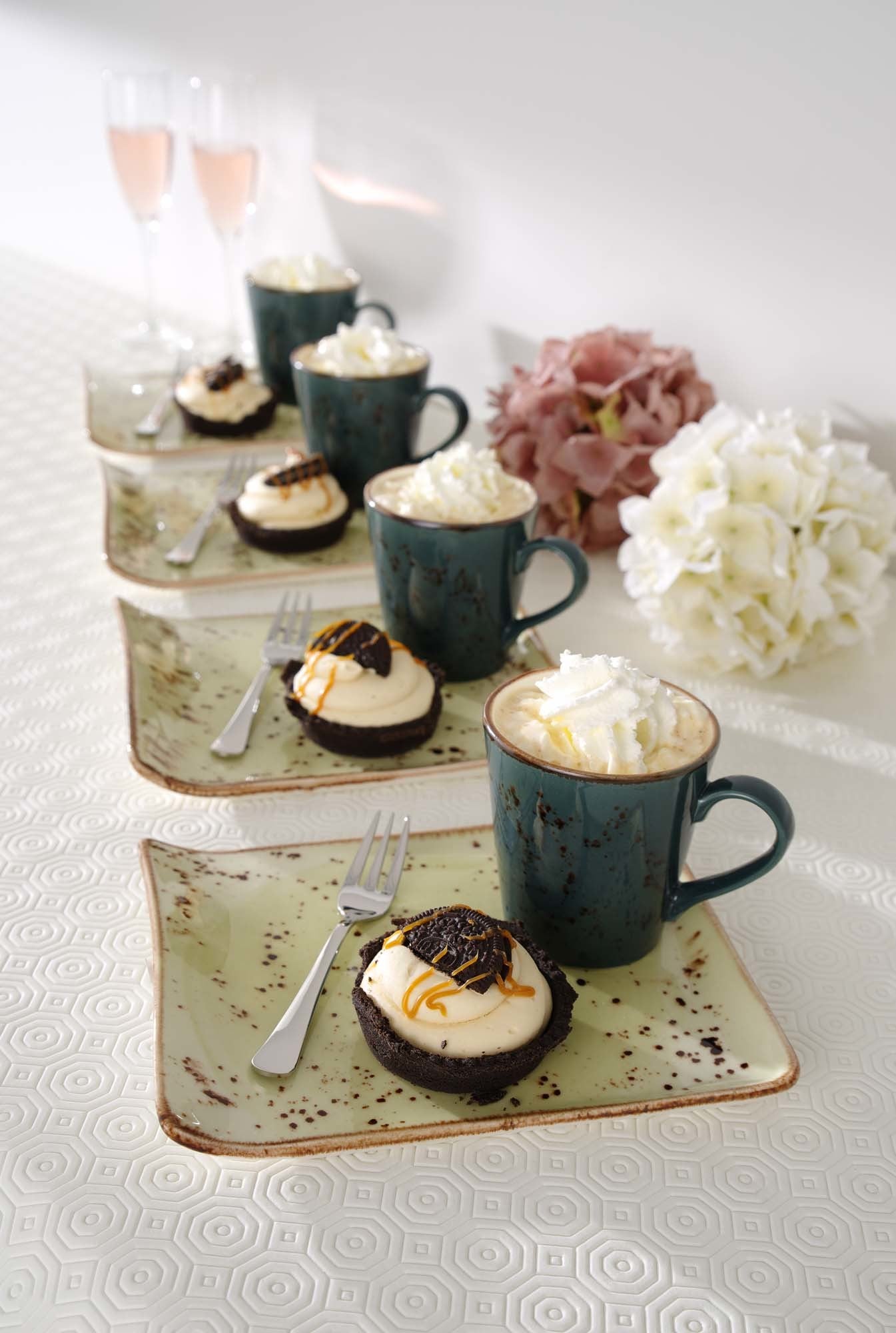 The Olive serving plate is a hand-decorated porcelain dish designed for professional kitchens and stylish table settings. Part of a four-color collection, you can mix and match olive with orange, blue, and grey to create a unique, restaurant-worthy presentation.