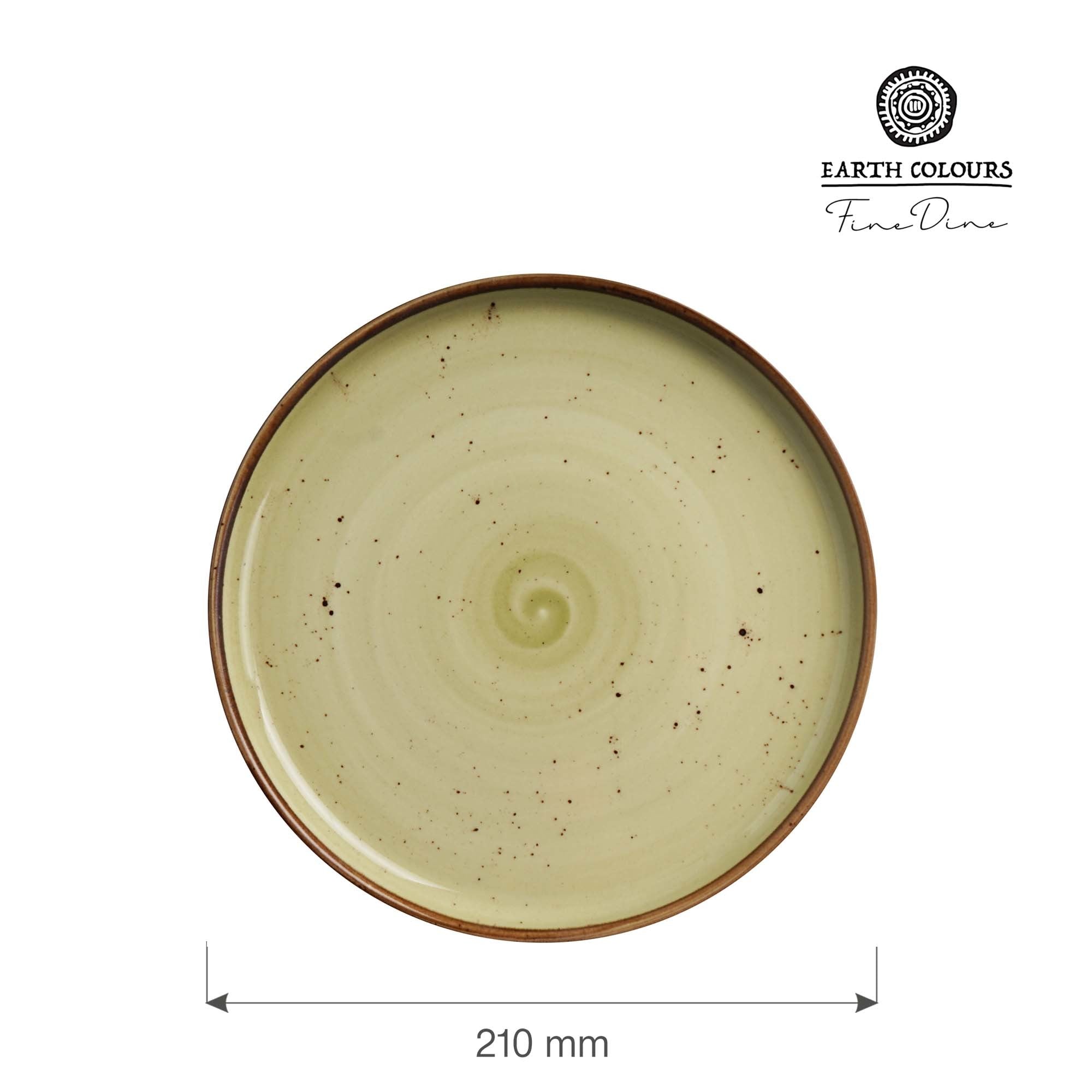 The Olive High Edge Plate (210mm) is a durable, hand-decorated porcelain plate designed for professional kitchens and stylish dining spaces. Part of a vibrant four-color collection, it invites you to mix and match olive with orange, blue, and grey for a distinctive table setting.