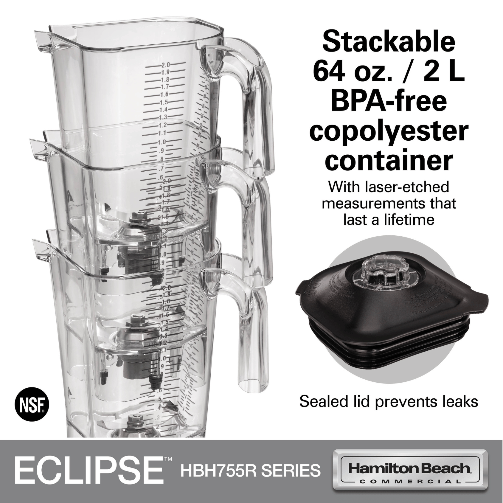 Container: 64 oz / 2 L Wave~Action® jug (copolyester) designed for large-batch blending while preserving drink texture.