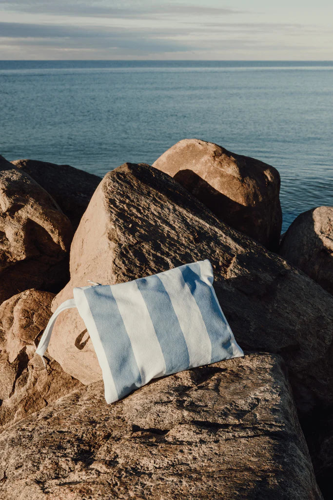 The Lagoa GRS Essentials Bag is a durable, stylish organizer built for travel, beach days, and everyday life. Crafted from premium 390 GSM canvas in a classic two-colour striped pattern, it keeps small items tidy and easily accessible and pairs perfectly with the Lagoa GRS Beach Bag.