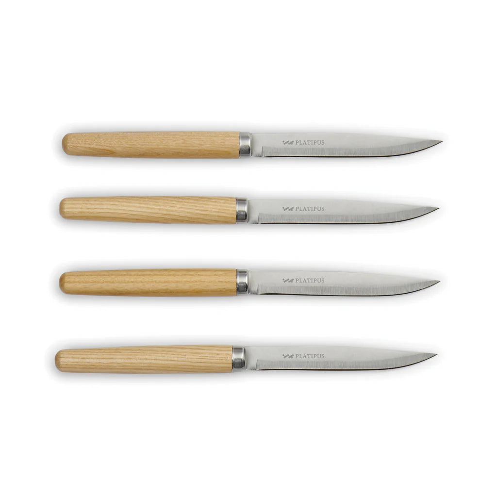 Set composition: 4-piece meat knife set with stainless steel blades and ashwood handles