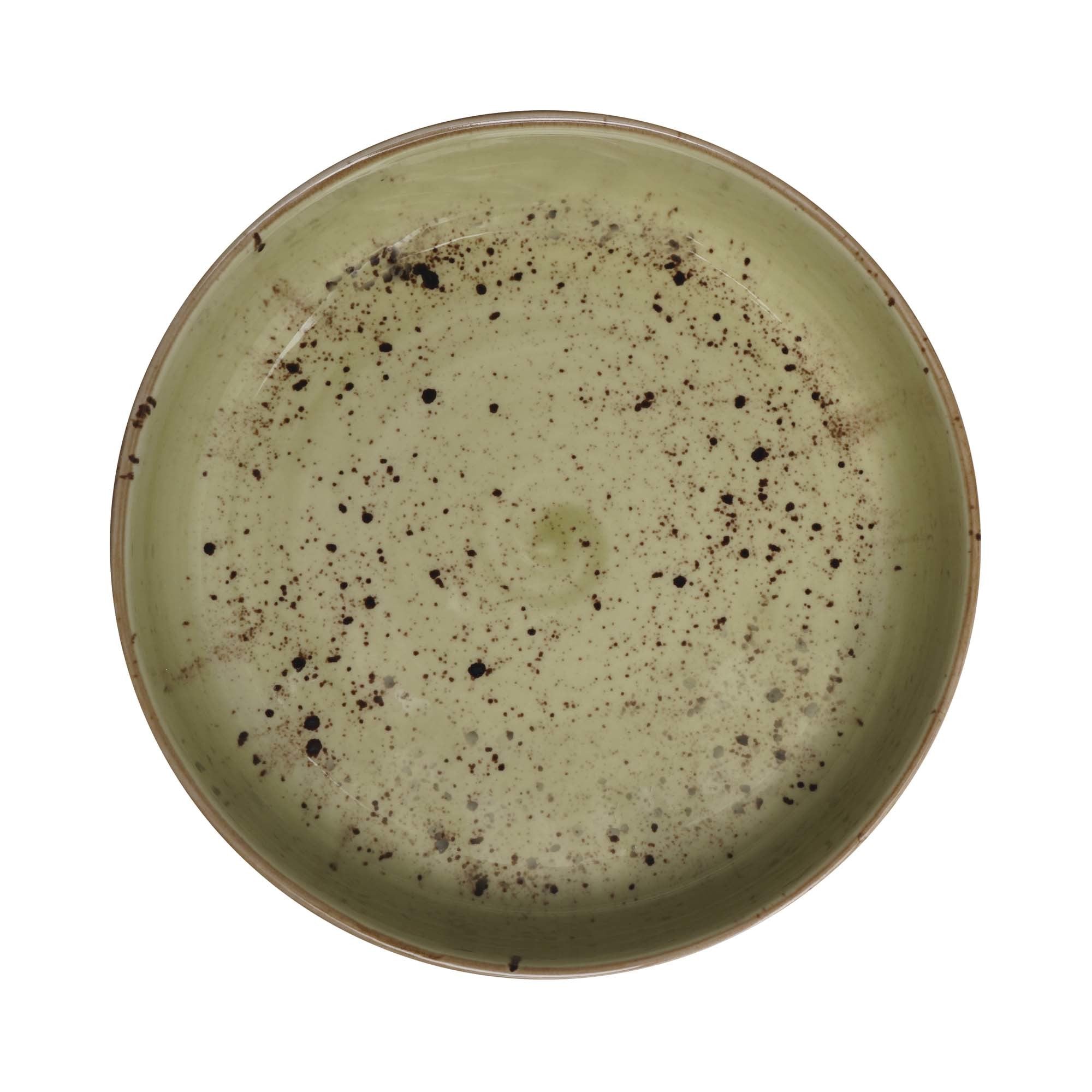 The Olive shallow bowl, 200mm, is a hand-decorated porcelain plating piece designed for professional kitchens and stylish dining spaces. Part of a four-color collection, it invites you to mix and match olive, orange, blue, and grey for distinctive table settings across your menu.