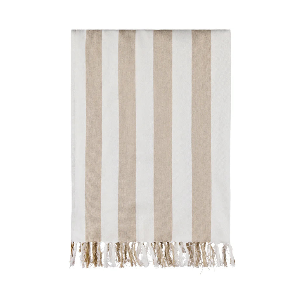 Design: Classic two-colored striped pattern with fringed short sides for a timeless, relaxed look.