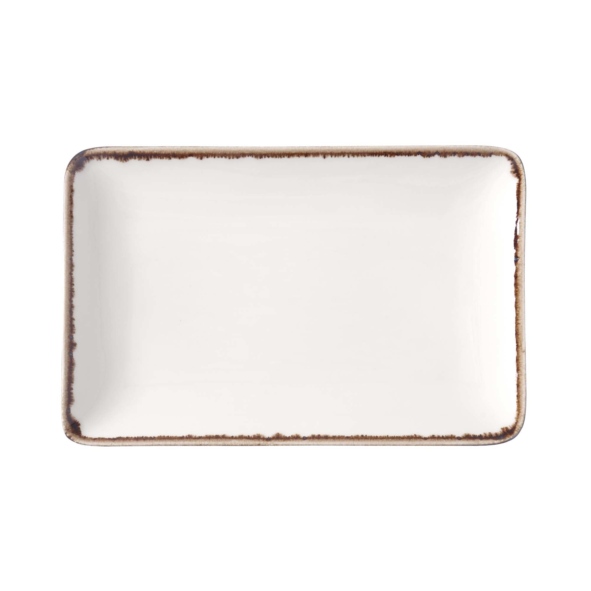 The Vanilla rectangular plate, measuring 300 x 200 mm, is a hand-decorated porcelain dish crafted for professional kitchens and discerning diners. Its four vibrant colors—orange, blue, grey, and olive—invite creative, mixed-table settings that elevate every plate.